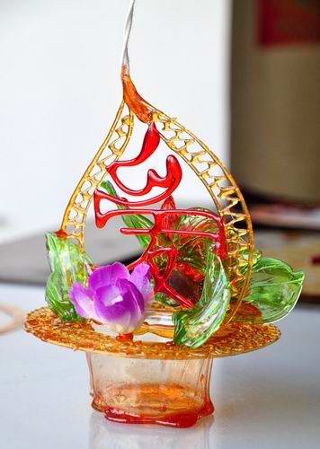 糖艺是使用蔗糖加入葡萄糖熬制,成品的质感不同于饴糖,调色后颜色丰富亮丽,而且增强了硬度,在空调环境中,经过妥善处理不受季节的影响,根据需要随时加工,而且具有可食性和装饰性的明显特点,是烘托气氛提高食品档次的最佳陪衬品。多用于高档酒会和大型比赛。在老一辈的西点大师中,凭着一双灵巧的手制作出很多令人叹为观止的作品,当时的制作条件极其简陋,砂糖品质粗略,一件成功的作品背后,隐含着无数的汗水。在这种条件下从事糖活儿的师傅很少,承传的后人也寥寥可数。历经十年浩劫之后国门大开,这一技艺在发达国家已经走出去很远,制作糖体的材料更加广泛,在市场上很容易购买诸如糖花、花篮、卡通糖等成品或半成品,甚至达到了现场制作的程度。