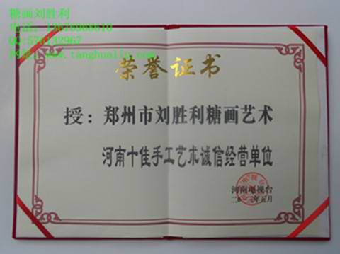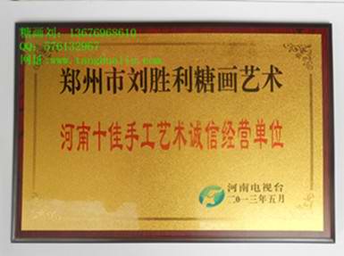 热烈祝贺郑州市刘胜利糖画艺术被河南电视台评为“河南十佳手工艺术诚信单位”