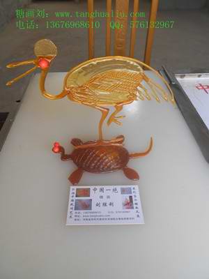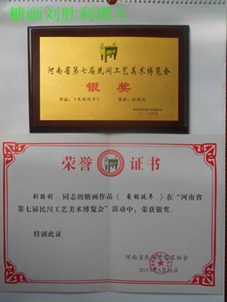 经过三天的比赛,糖画刘胜利的作品《龟鹤延年》荣获河南省第七届民间工艺美术博览会银奖。