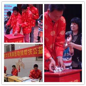 在活动的现场,为了帮助双胞胎孤独症兄弟曹永强、永志实现上学梦募捐,社会上的爱心志愿者人士积极献爱心,不少残疾人士也为双胞胎孤独症兄弟奉献出自己的一份爱心,其中就有糖画艺人刘胜利等人。