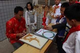 这位艺人为小朋友们展示了自己的工艺品