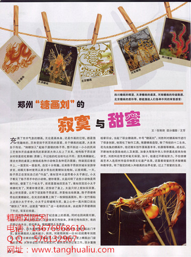 《迎新春 探访民俗高手》的视频链接:http://www.cutv.com/v2/2013-2-10/E18ijiiinjloimrqnior7d.shtml,《郑州晚报》专访电子版地址:http://www.abbao.cn/page/2439231520555.shtml这些可以帮助大家更好的了解糖画艺人刘胜利,想学糖画的朋友请直接拨打电话:13676968610、13783643765